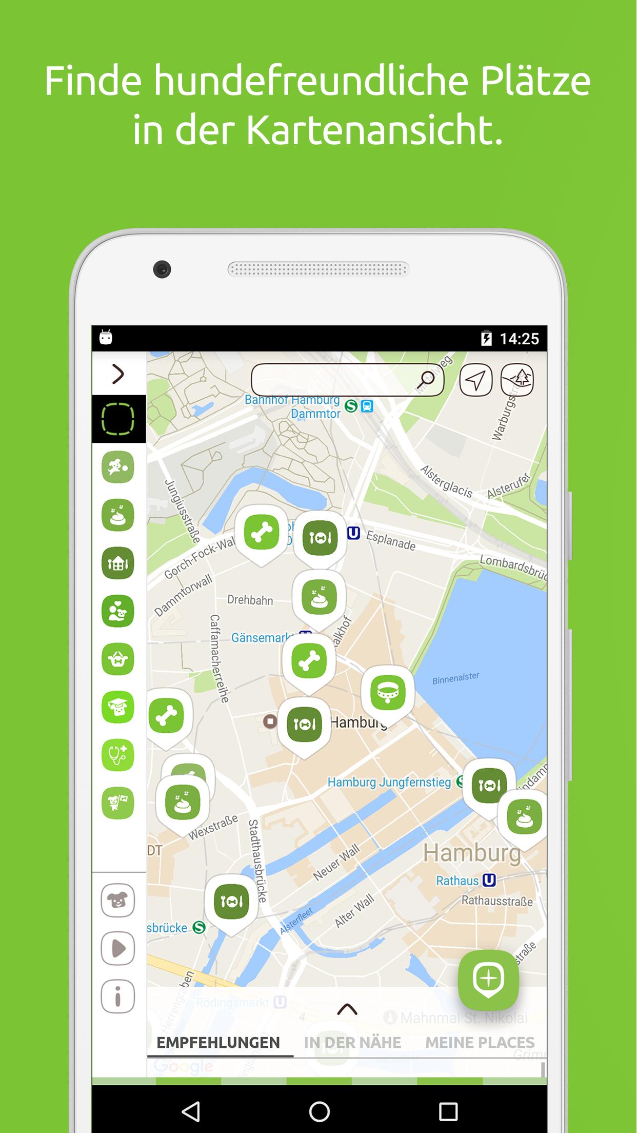 私たちの無料のアプリの犬は、犬の飼い主にすべての犬に優しい場所を1つの地図上に示しています。特定のカテゴリを検索したり、散歩に行くのが特に美しい場所に表示されるすべての場所を検索するか、特に場所を探しています。もちろん、たとえば休日など、計画するのに最適な場所を求めて、犬やそれぞれの場所で検索できます。