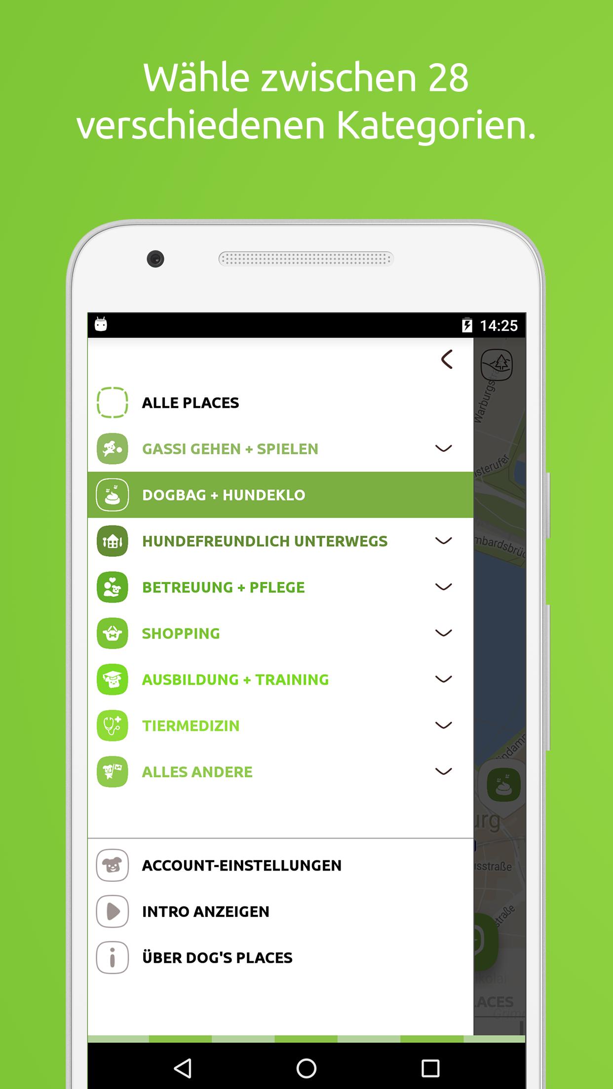 Dog's Placesで、犬の飼い主はあなたが犬と一緒に訪れることができる多くの場所を見つけます。最もおもしろい部分:新しい場所、レート、コメントを作成することもできます!だから、私たちのDog's Placesアプリが少し良くなるという事実を着ています!